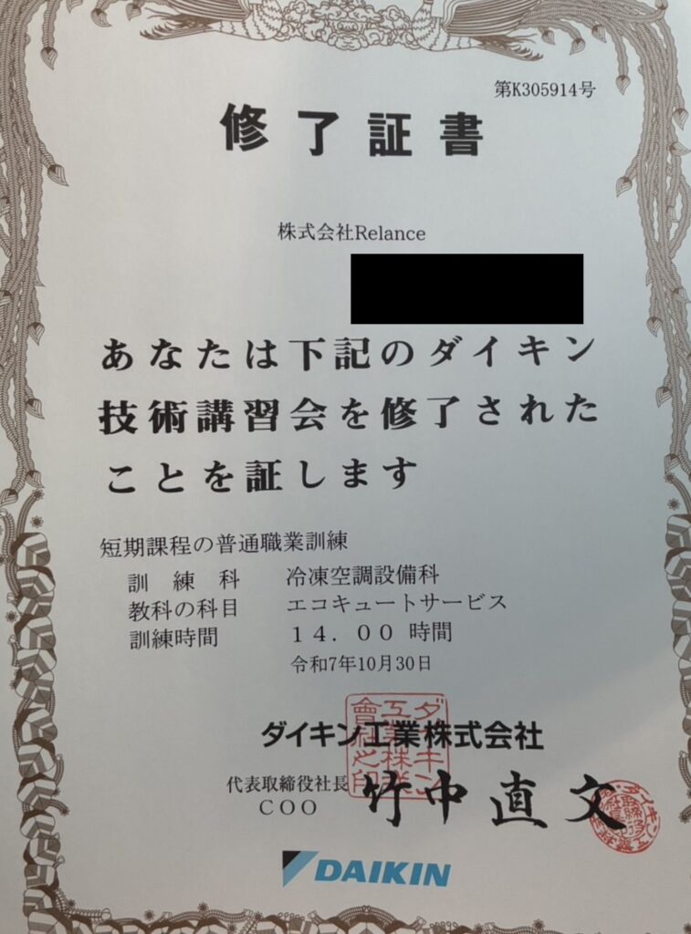 【ご報告】ダイキンエコキュートサービス研修を受講しました!🔧✨