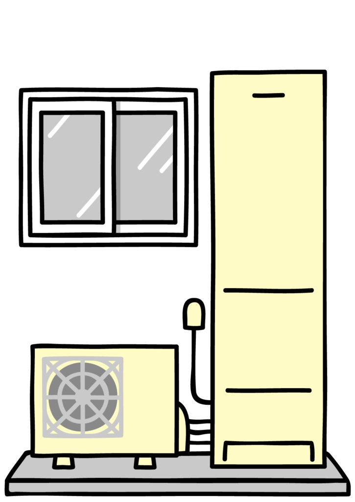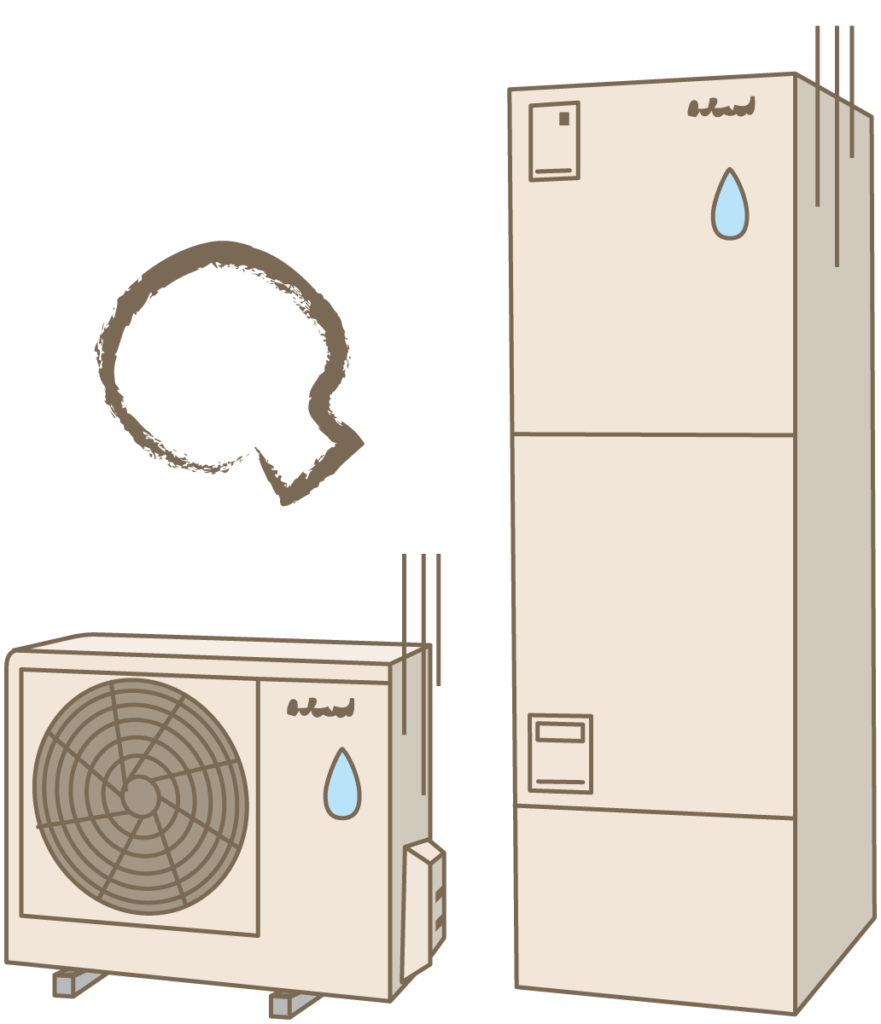 正式名称は「自然冷媒ヒートポンプ給湯機」と呼ばれ、電気と空気中の熱エネルギーを利用して効率よくお湯を沸かします。